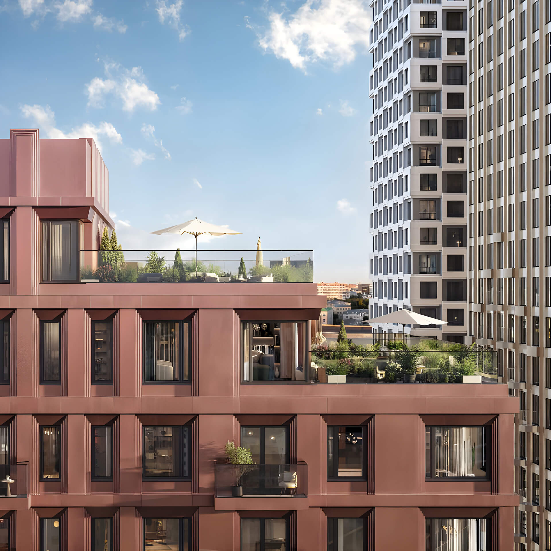 Архитектурное решение жилого комплекса «Среда на Варшавской» от бюро «Меганом» сочетает элегантность и функциональность. Фасады зданий выполнены в современных материалах с акцентом на экологичность и устойчивость. Просторные балконы, витражные окна и контрастные элементы придают каждому дому стильный и динамичный облик. Комплекс гармонично вписывается в окружающую застройку, создавая уютную атмосферу для жизни и отдыха.