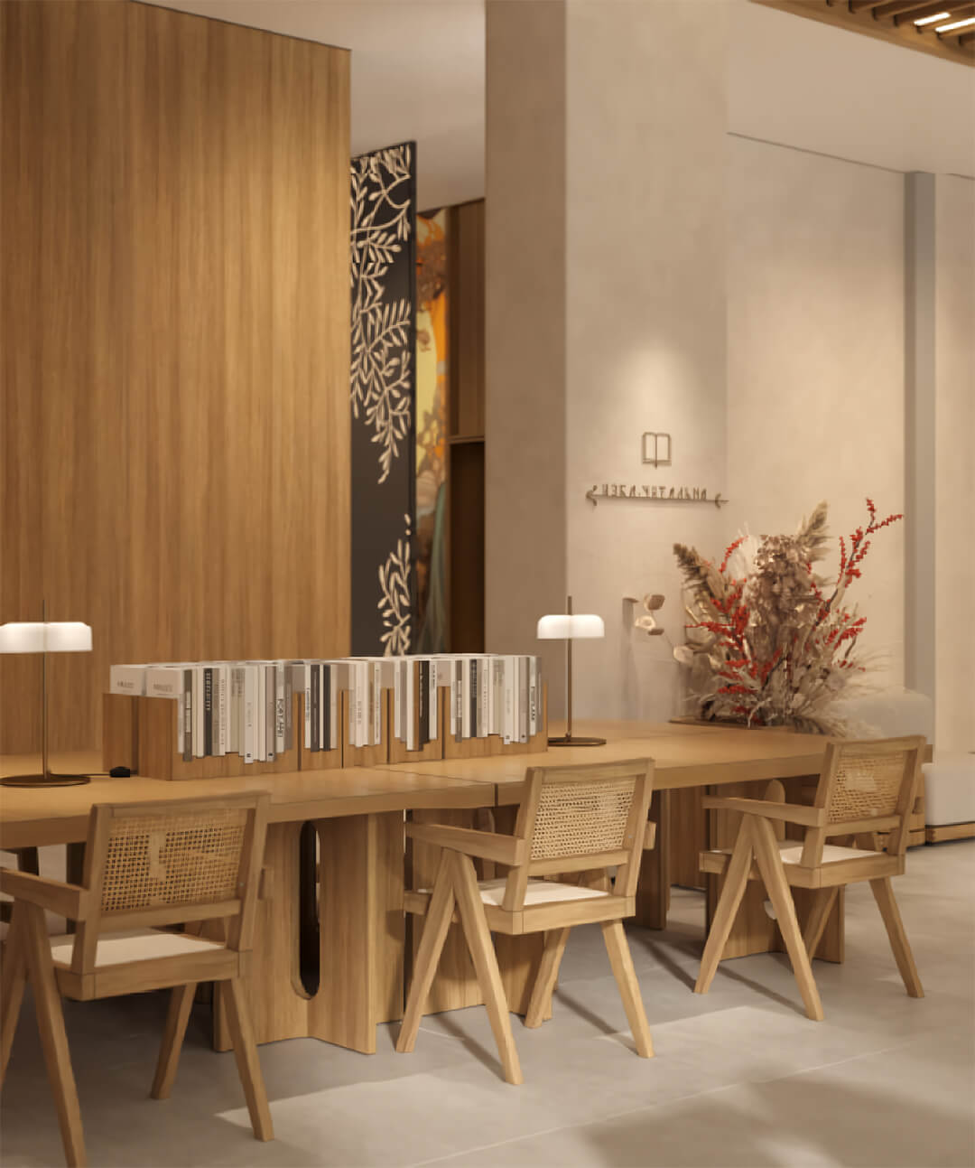 Лобби жилого комплекса «Среда на Варшавской» — это пространство, где встречаются стиль и комфорт. Светлые оттенки в отделке, уютная мягкая мебель и теплый свет создают расслабленную атмосферу, приглашая замедлиться перед входом в квартиру. Акцентным элементом пространства являются художественные панно в стиле русских сказок, каждое из которых рассказывает свою историю, наполняя лобби атмосферой волшебства и уюта. Такой подход к дизайну лобби способствует созданию сообщества и взаимодействия между соседями, превращая его из зоны ожидания в место для общения и отдыха.