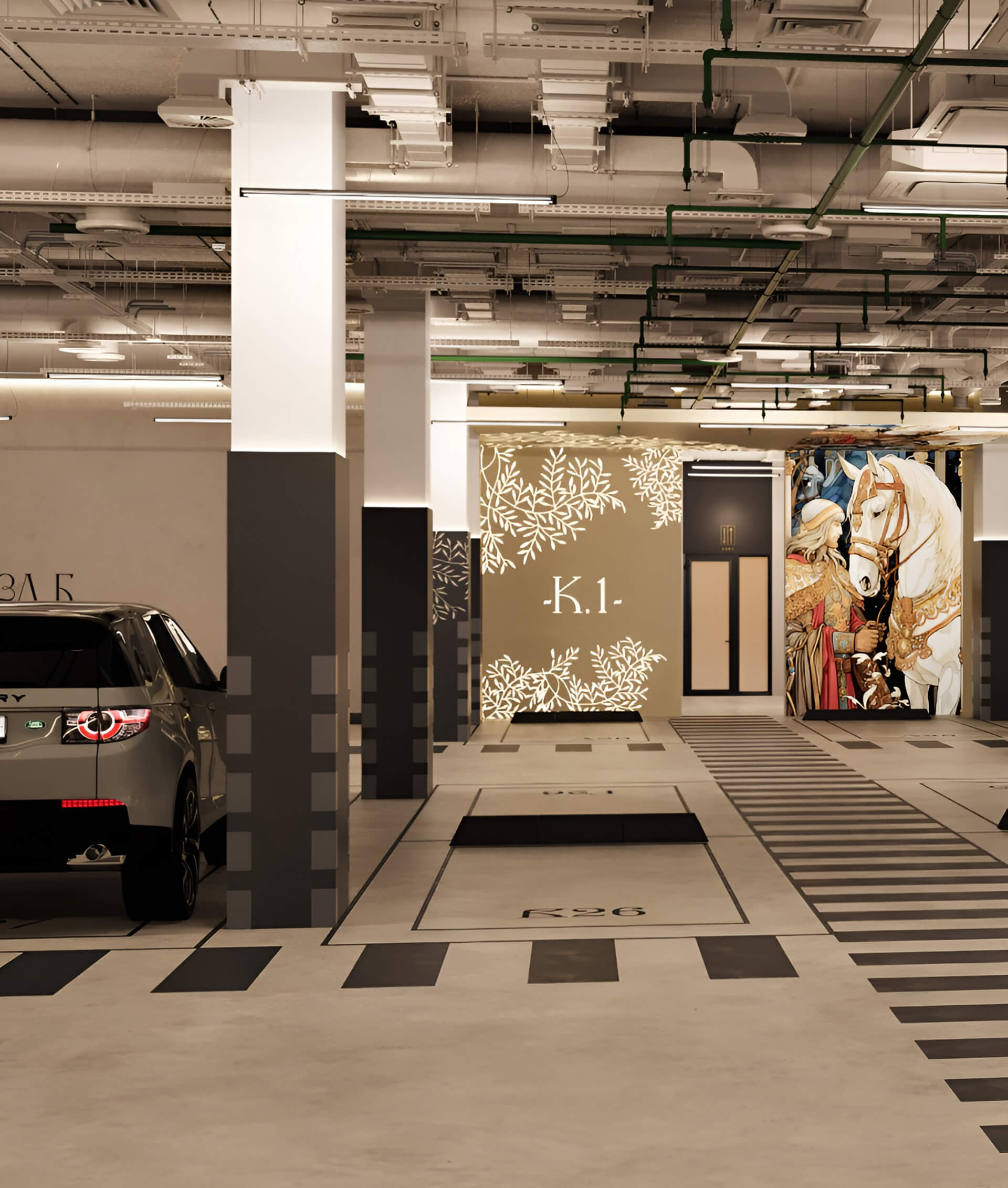 Для автовладельцев предусмотрен двухуровневый подземный паркинг, соответствующий современным требованиям безопасности и комфорта. Паркинг оснащен станциями зарядки для электромобилей, что отражает стремление комплекса к экологичности и современным технологиям. Дизайн-код паркинга продолжает концепцию лобби, создавая гармоничное пространство для жителей. Для обеспечения безопасности реализована система видеонаблюдения и усиление сотовой связи. Дополнительные удобства включают келлеры и места для хранения велосипедов, что делает проживание в комплексе еще более комфортным.